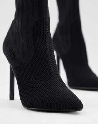 REVENGE Black Block Heel Sock Bootie